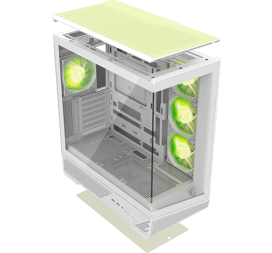 El MSI MAG Pano 130R PZ combina estilo y rendimiento con su chasis espacioso, panel lateral de vidrio templado y cuatro ventiladores ARGB preinstalados. Ofrece ventilación eficiente, amplio espacio para componentes y una estética gamer llamativa, ideal para construir un setup moderno y potente.