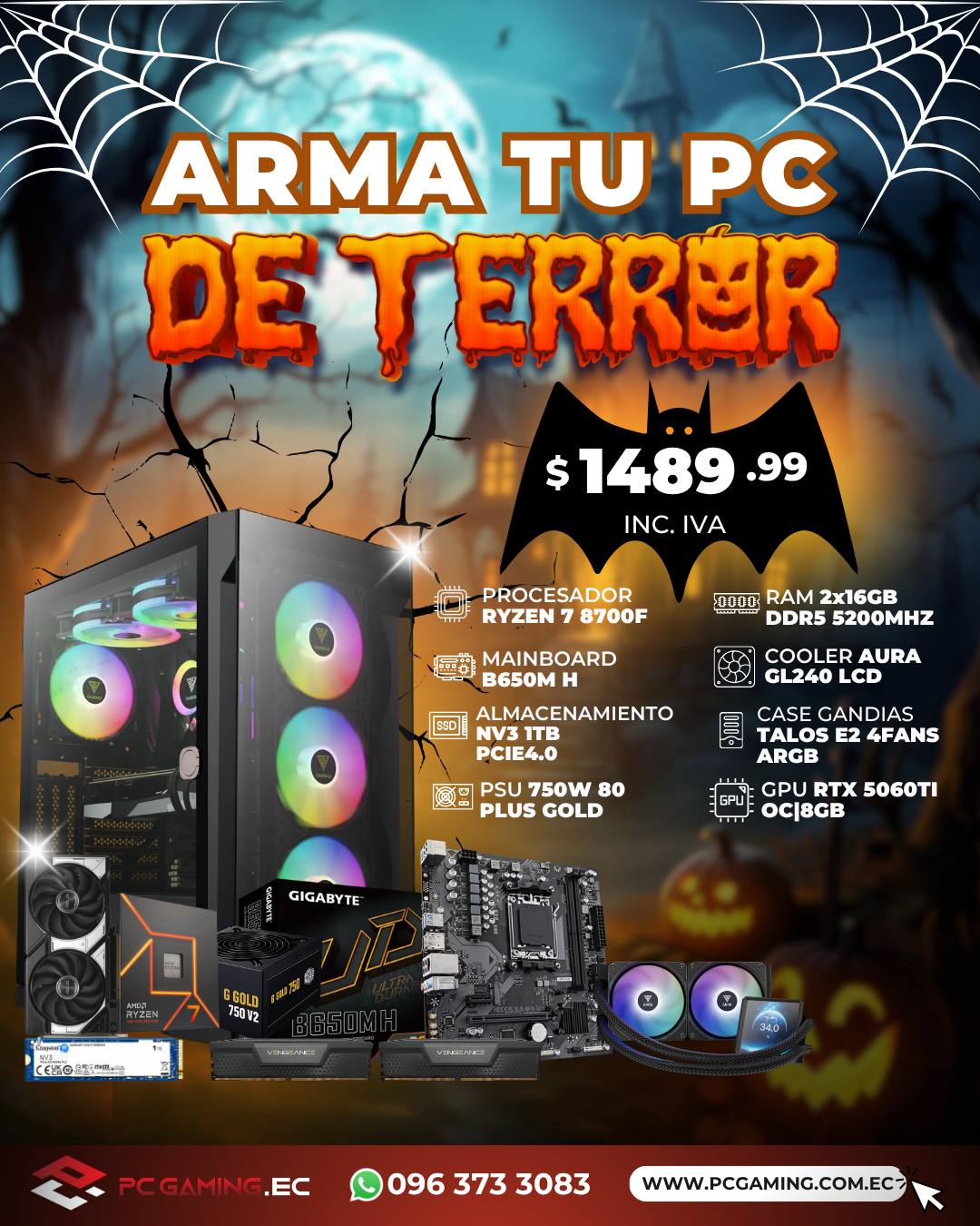 PC PROMO RYZEN 7 8700F + RTX 5060TI OC 8GB